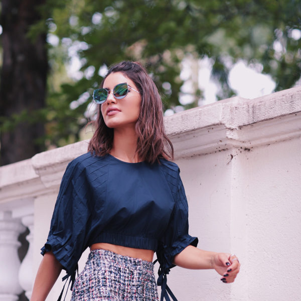 SPFW #1: Look Marinho e Calça Tweed